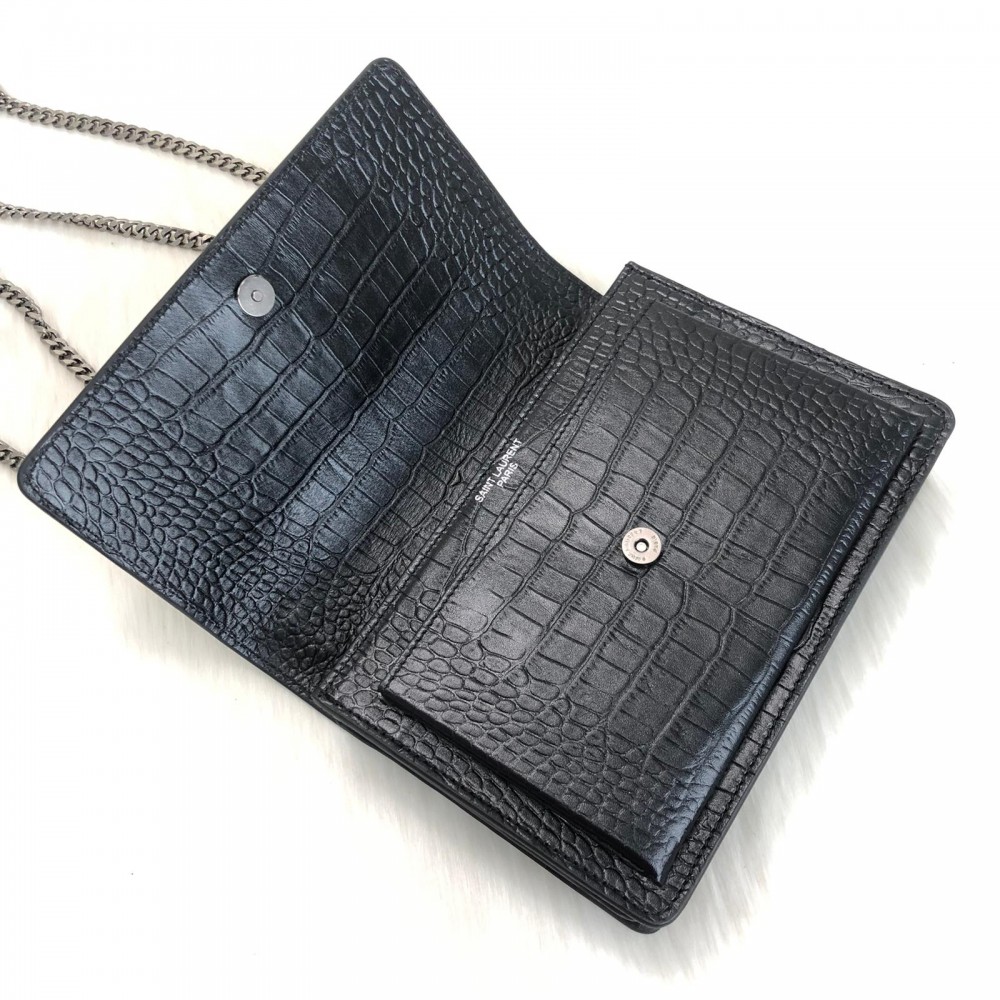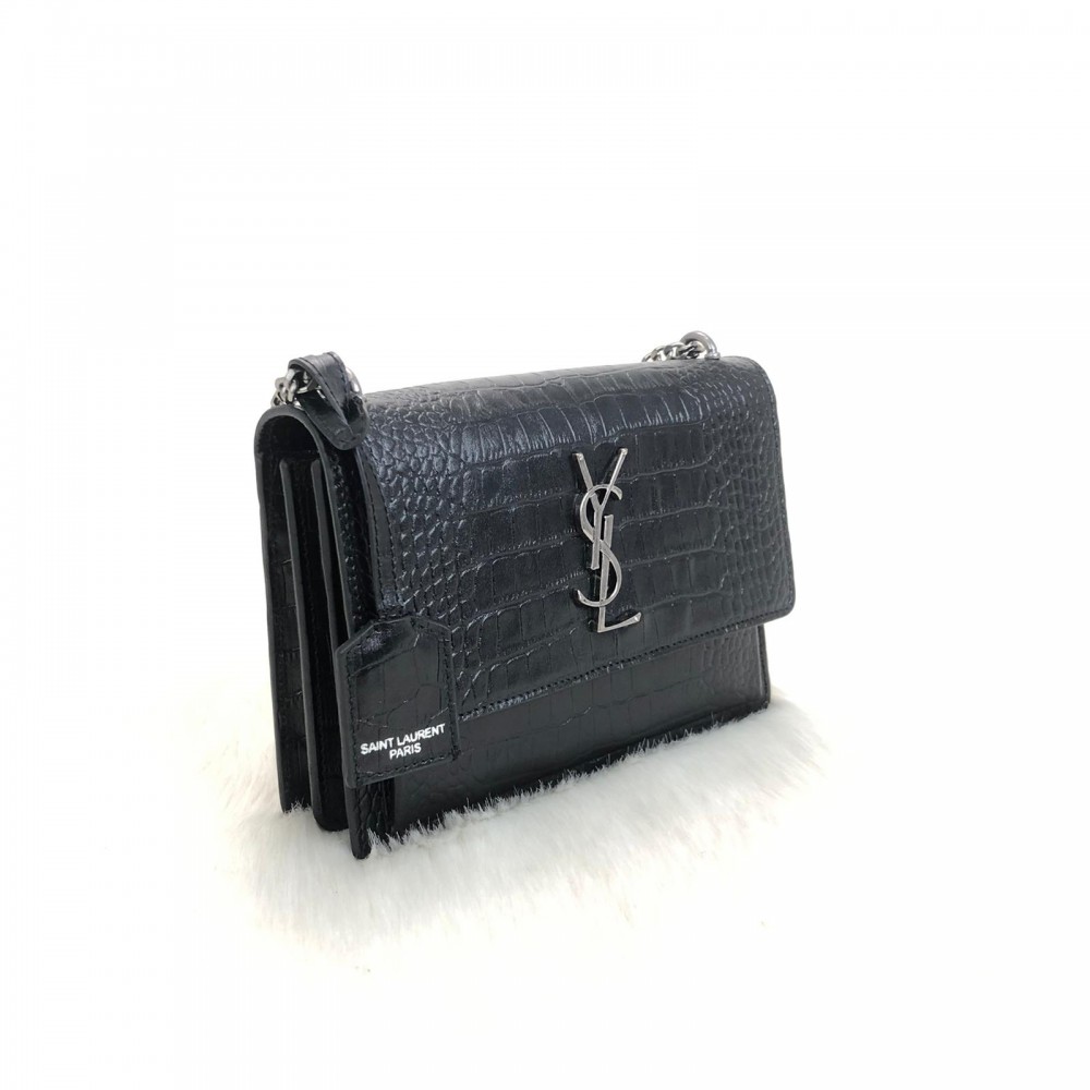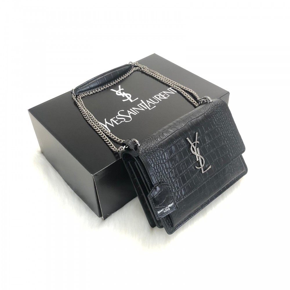 YVES SAİNT LAURENT SUNSET MEDİUM SİYAH CROCO GUMUS