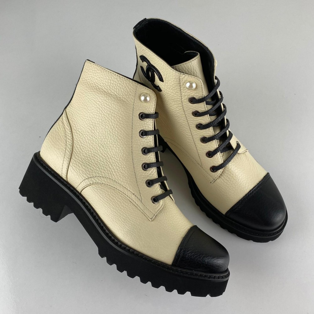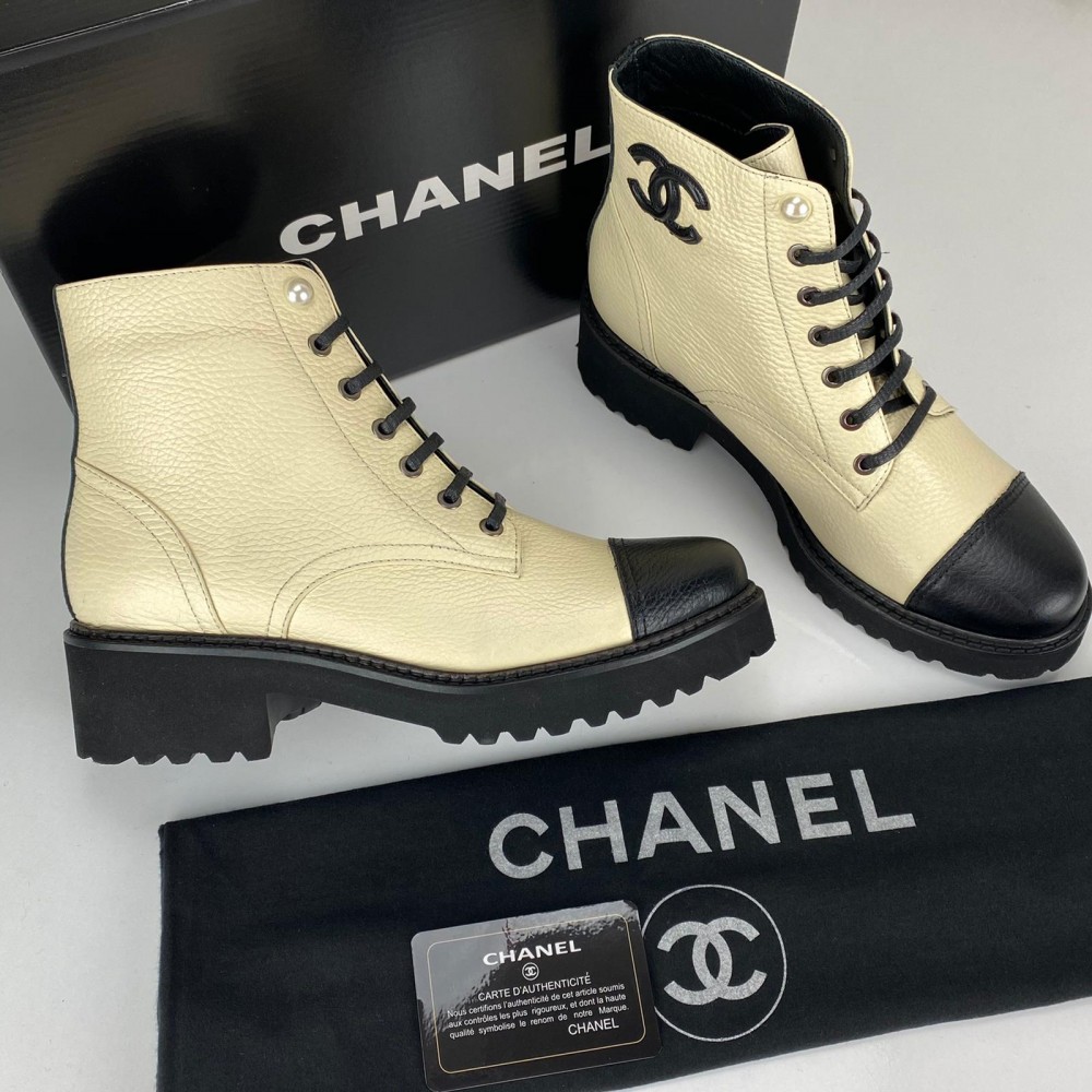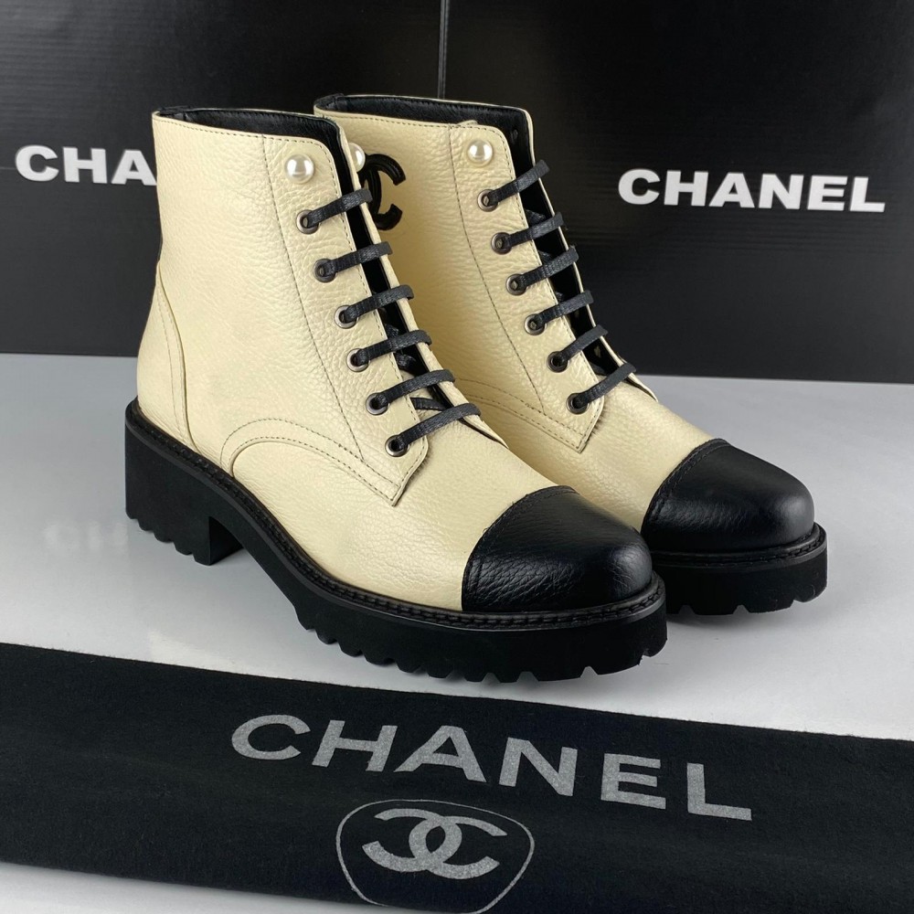 CHNL GRAİNED CALFSKİN CC ANKLE BOOTS KREM